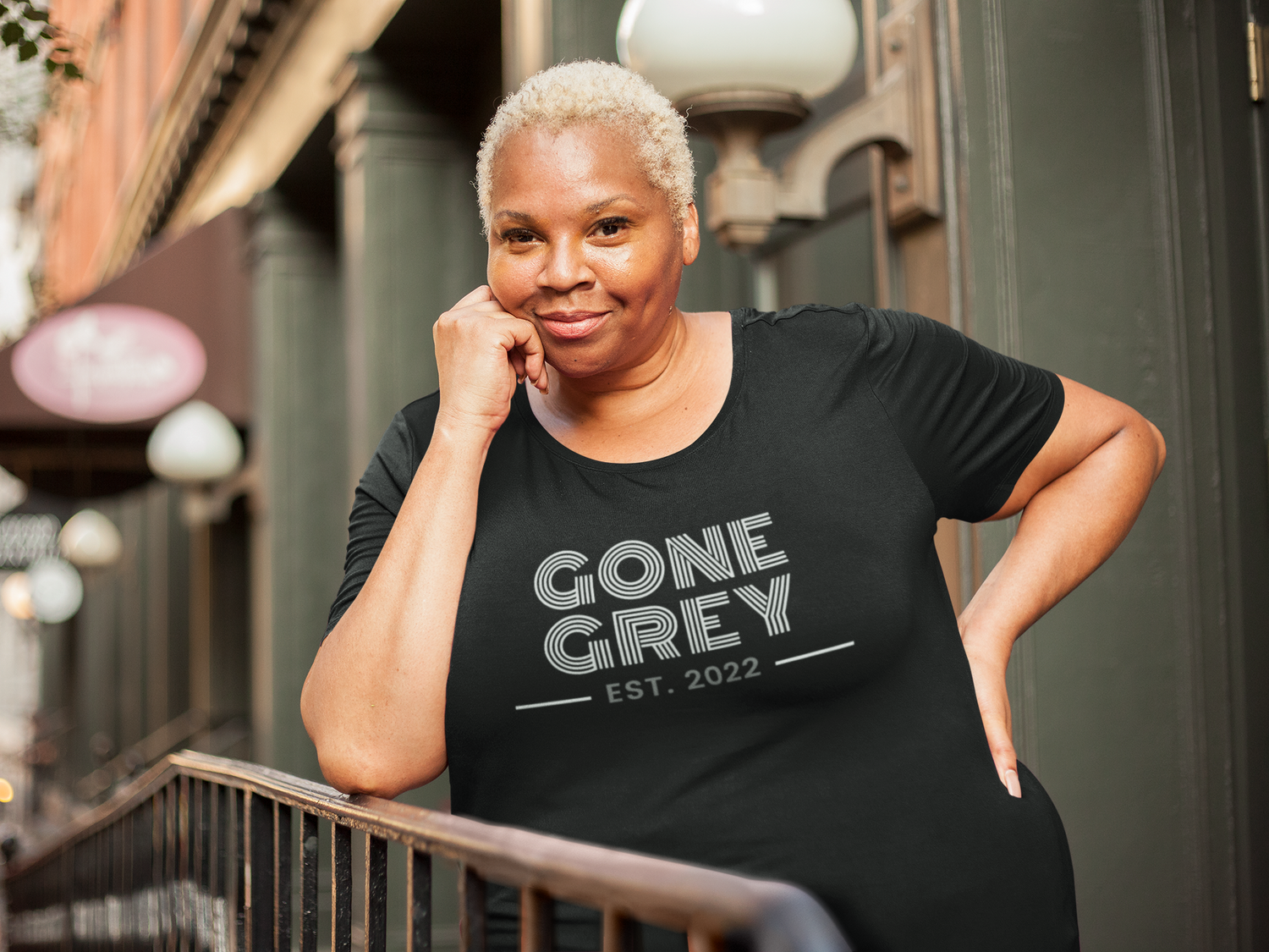 Silver hair. Unapologetic style.