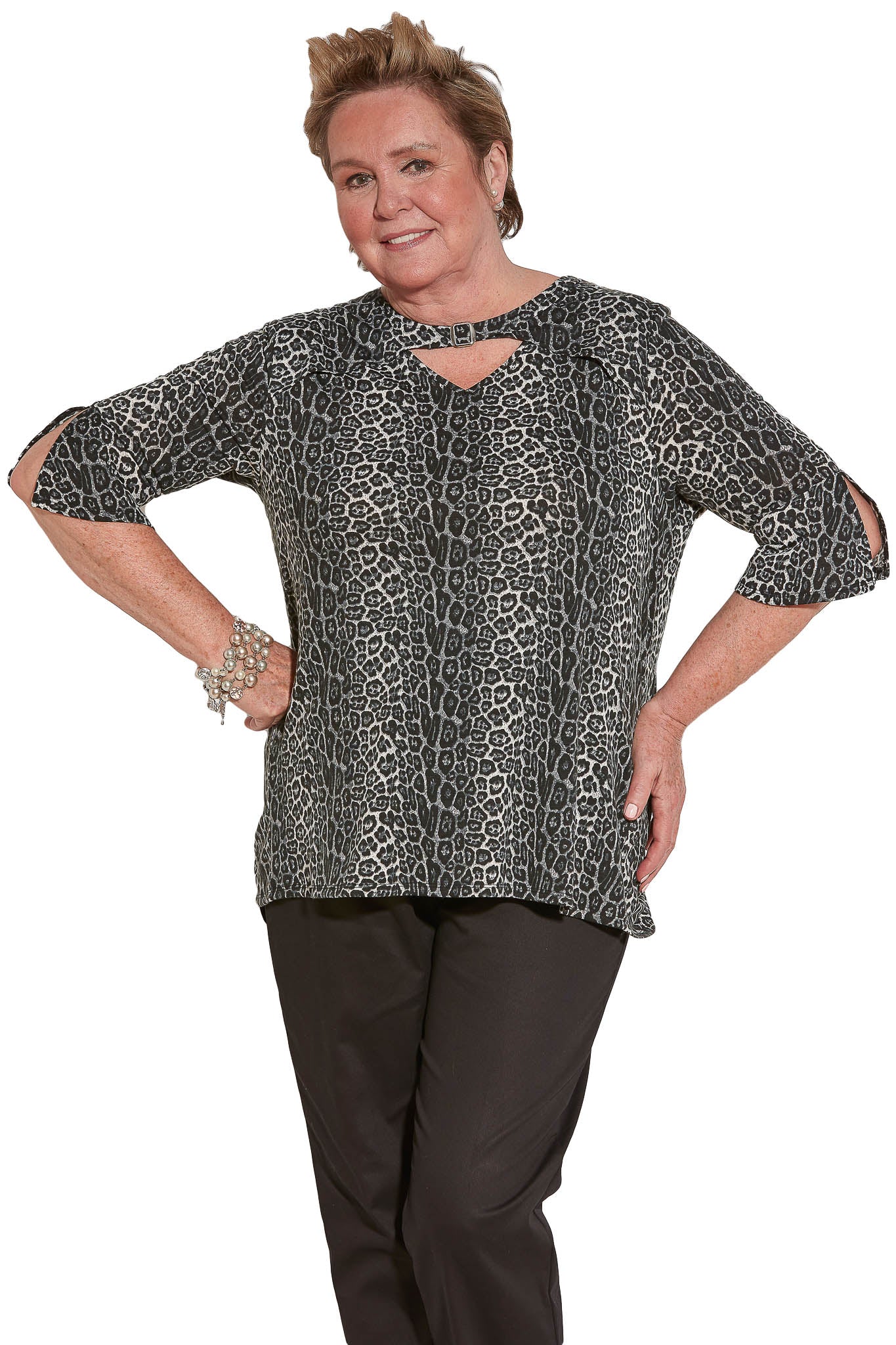 The leopard print and luxurious hand feel of this soft knit is a testament to the style and comfort it promisses to deliver! The Gigi top is playful yet elegant and will make you feel great thanks to the comfortable weight and stretch of this ponte knit. The asymmetrical detail sealed by a metallic buckle creates an element of playfulness. 3/4 flouncy bell sleeves give it a breezy look.